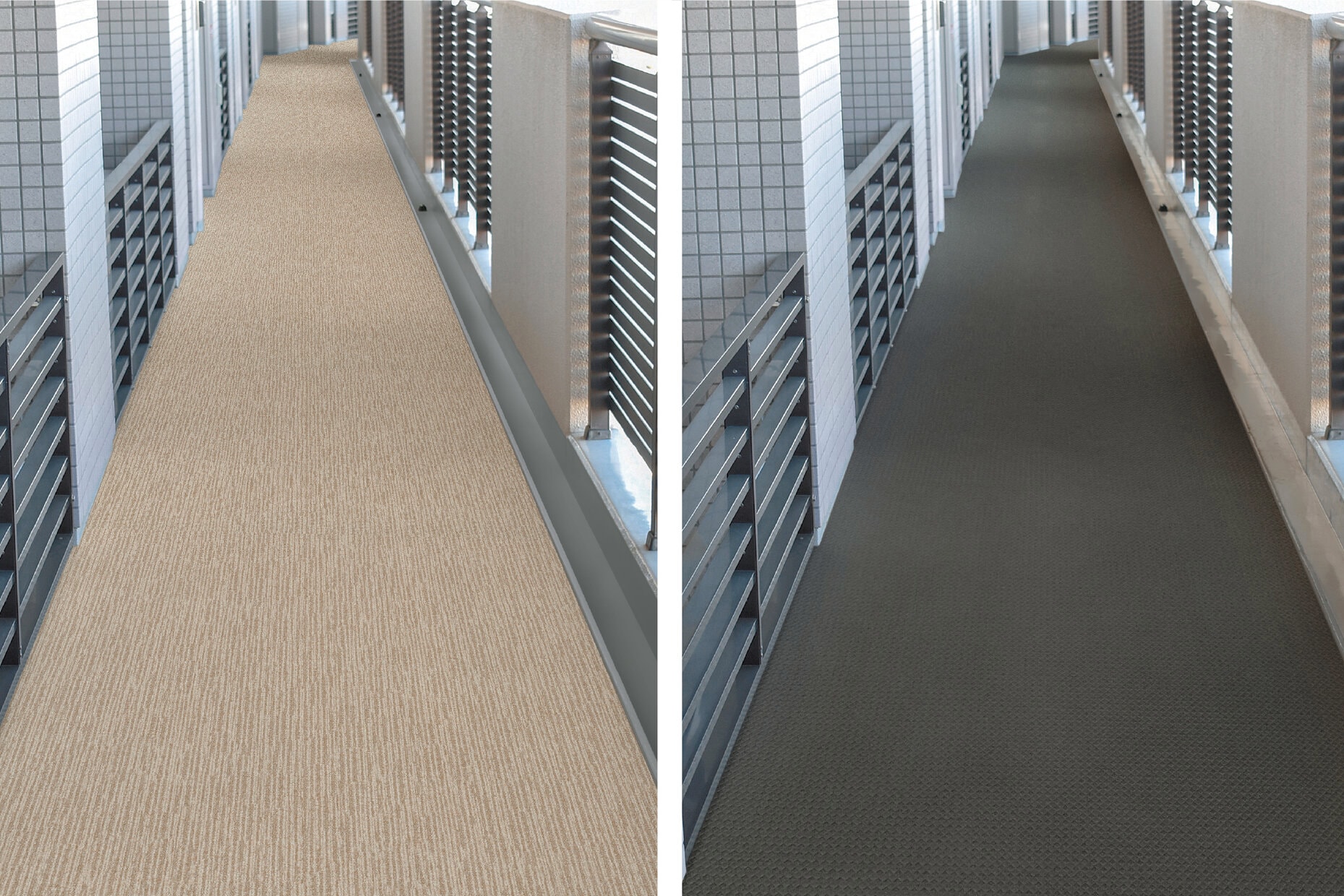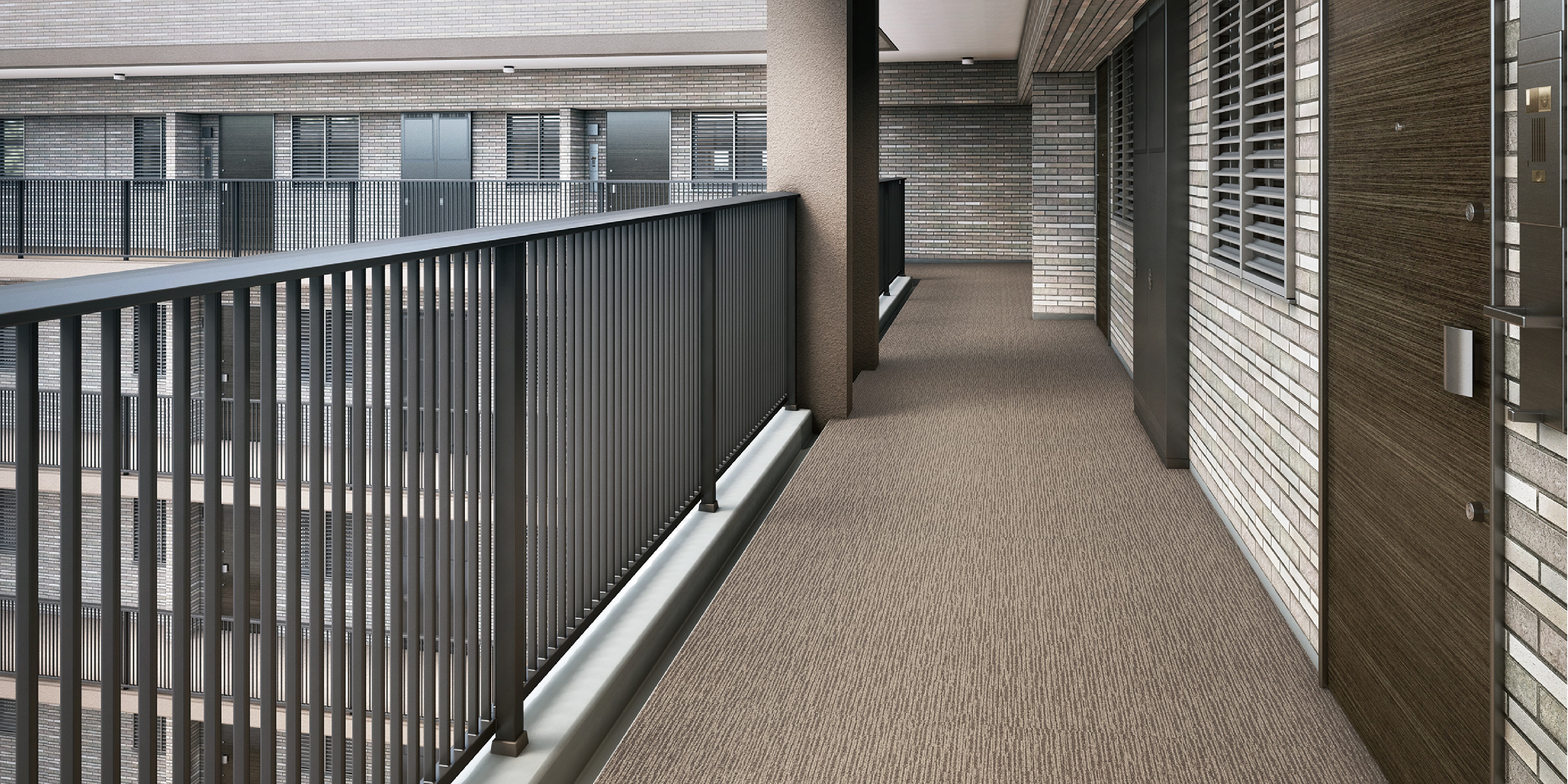 集合住宅の共用廊下床面を彩り、護る、防滑性ビニル床シート