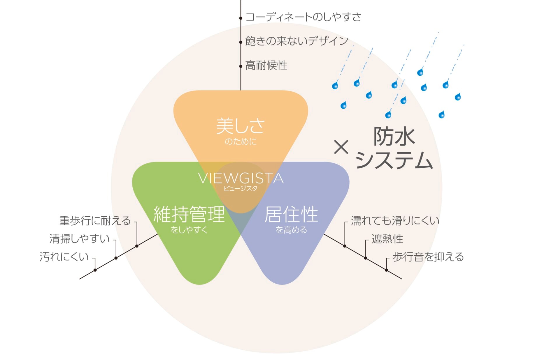 意匠に加え、清掃性向上、歩行音の軽減、転倒時の衝撃緩和等の機能を併せ持つタイプもあり、維持管理や快適性などの用途・目的に応じた選択が可能です。