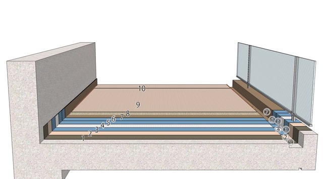ウレタン塗膜防水工法(防滑性ビニル床シート仕上げ)