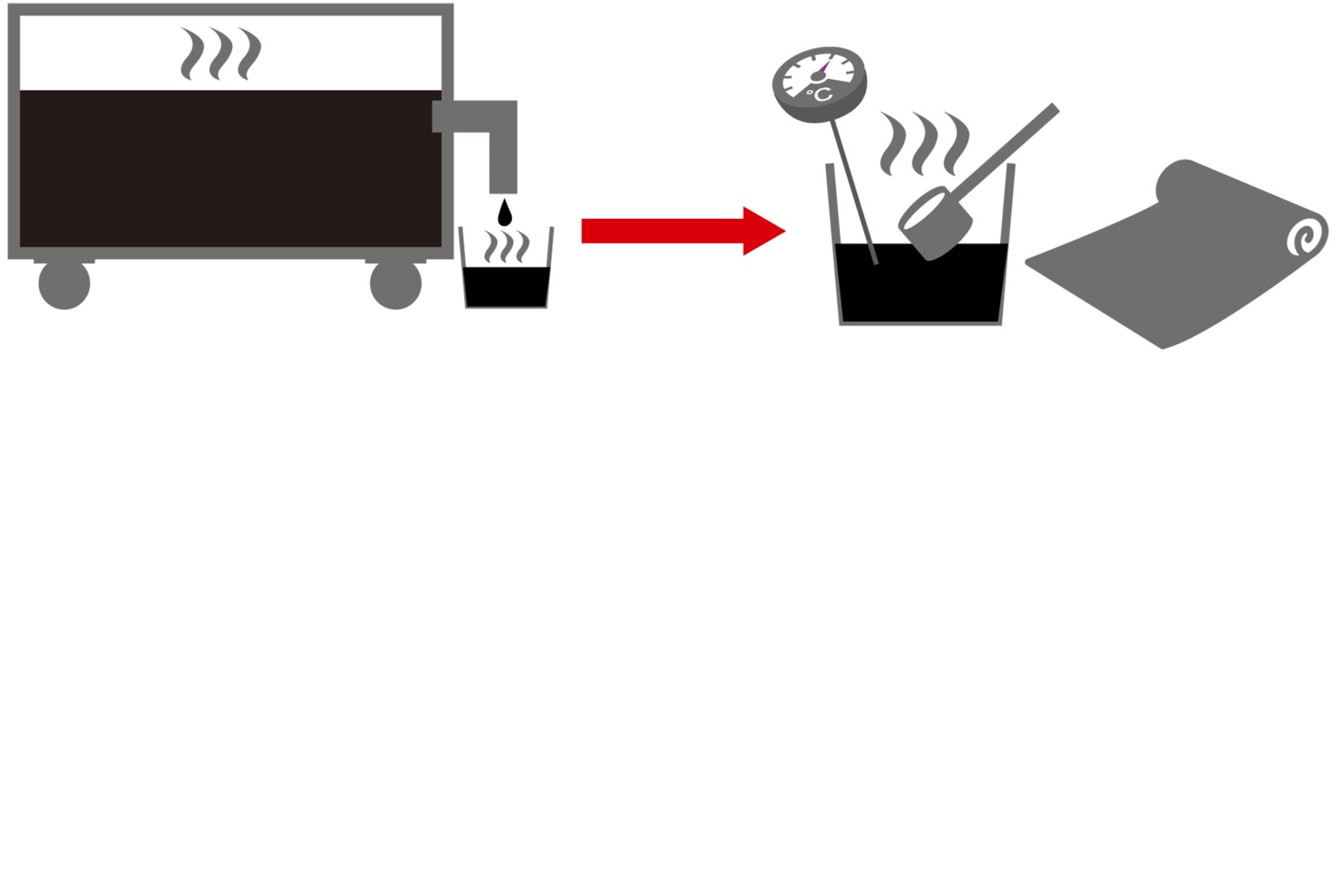 温度管理機能付きの溶融釜と材料運搬用一斗缶専用温度計を活用してアスファルトの温度管理を徹底したことで、より確実に高品質の防水層を生み出すことが可能となりました。