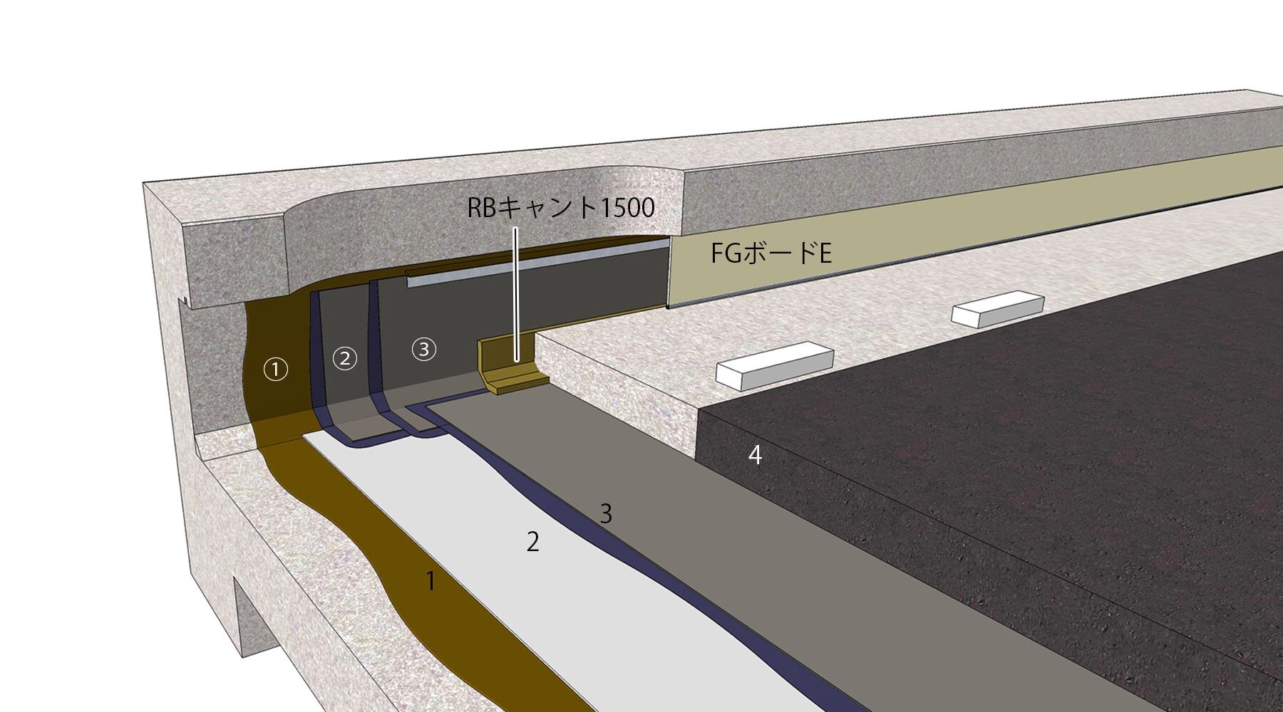 立上り際までアスコン舗装を行うと、転圧や締め固めが不十分になりやすく、また注意しないと防水層を傷つけやすくなることがあります。 - ・保護材のオプションとして、「バリスター」を使用する場合はご相談ください。