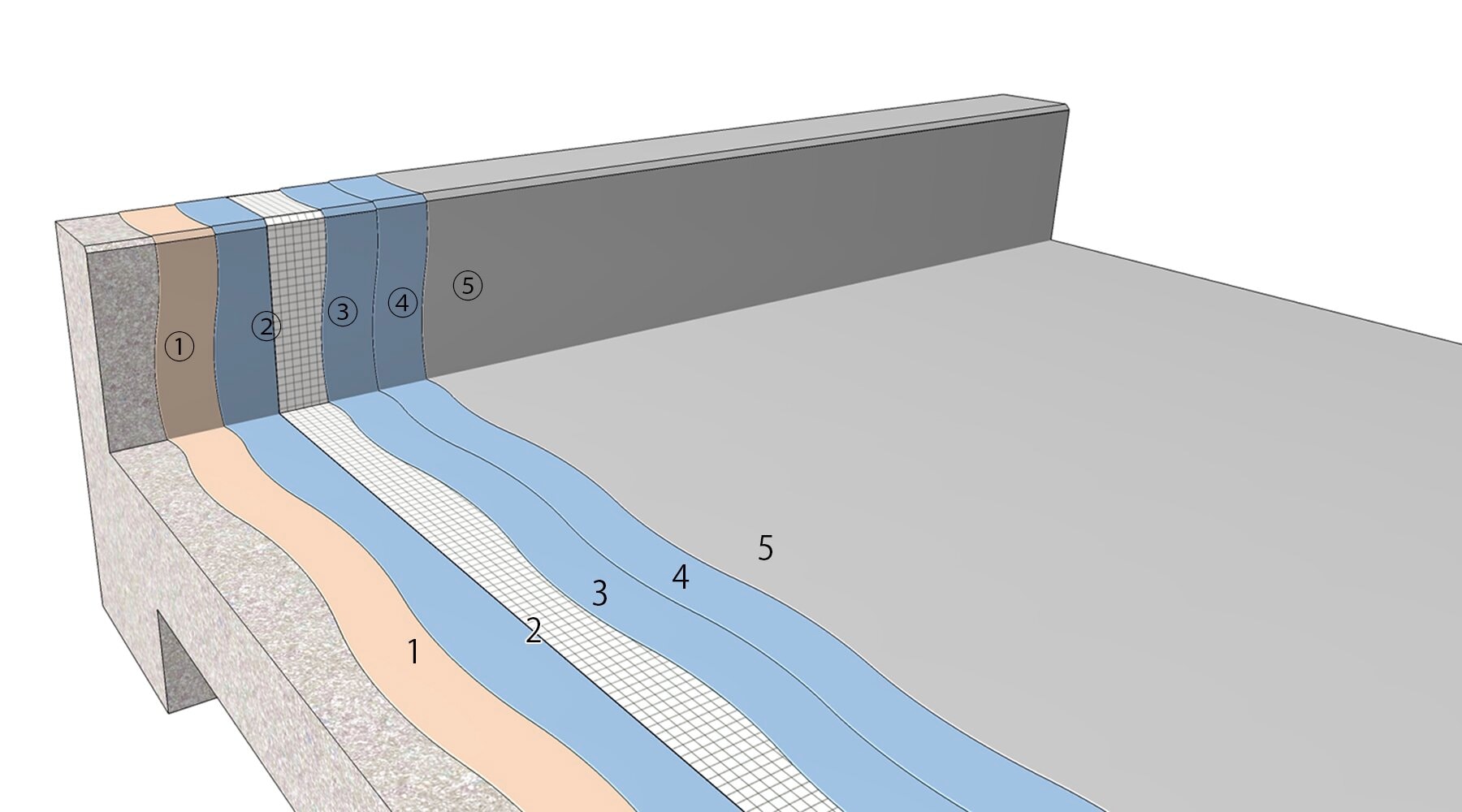 - ウレタンゴム系塗膜防水材塗りは、2回以上に分割して塗り付ける。