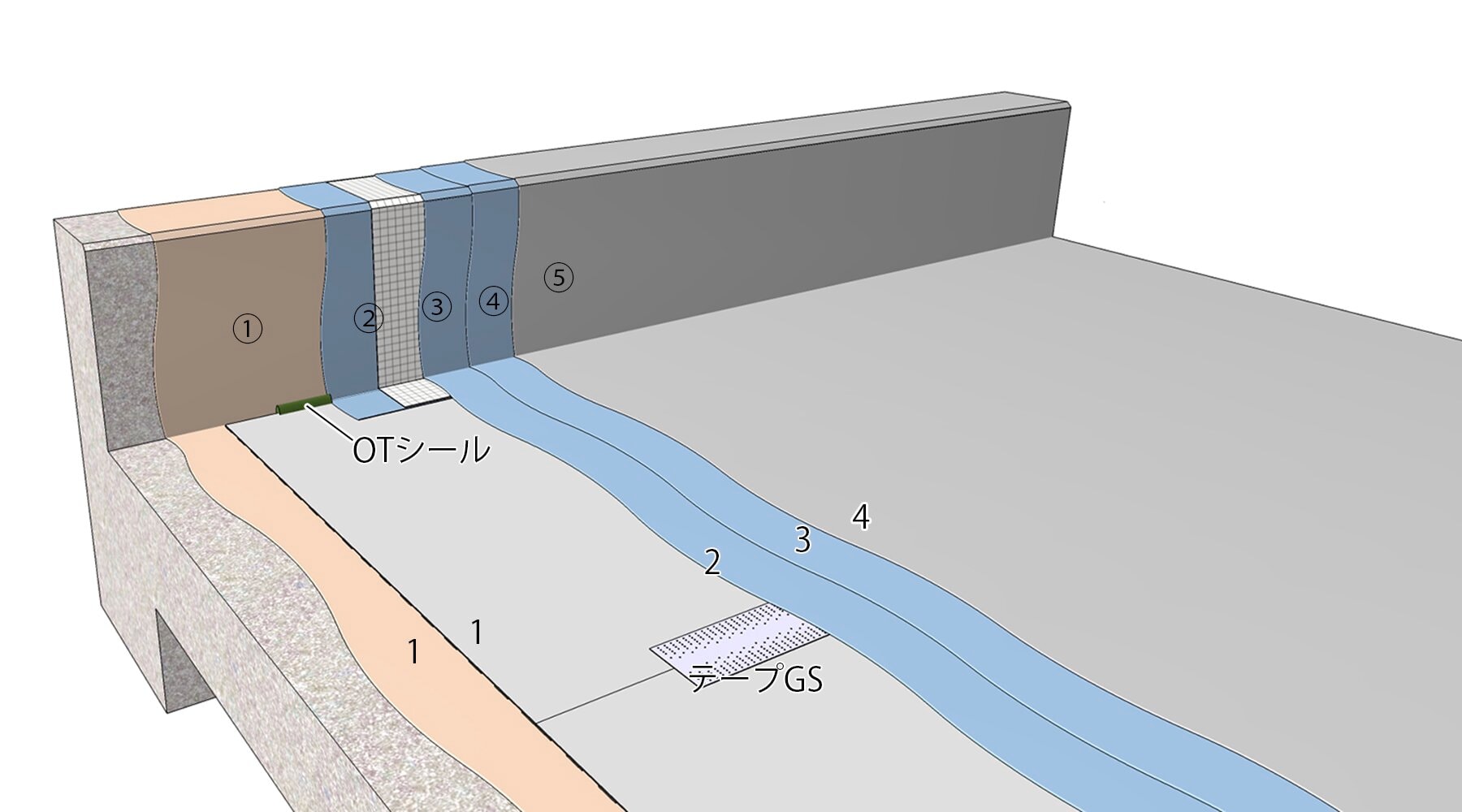 - ウレタンゴム系塗膜防水材塗りは、2回以上に分割して塗り付ける。