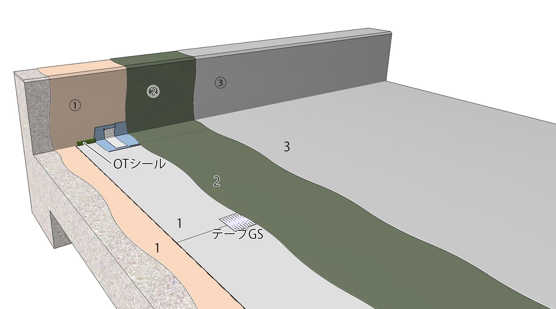 - 接着剤以外による通気緩衝シートの張付け方法は、主材料の製造所の仕様による。