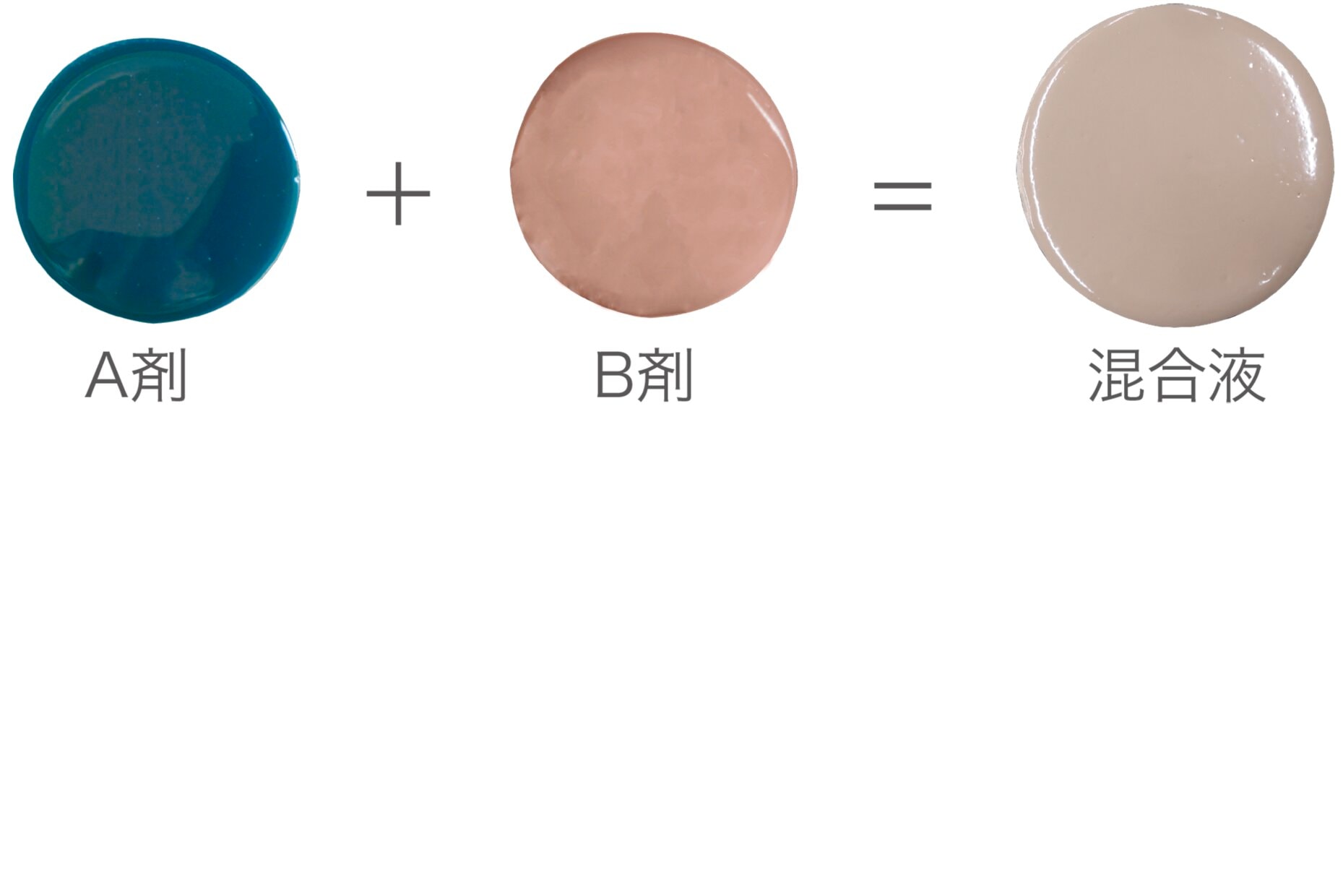 3.目視管理が容易な2液着色型で、撹拌不良を防ぐ。