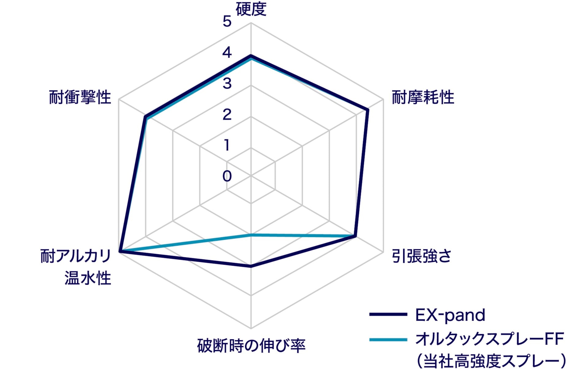 手塗りタイプのウレタン塗膜防水エクスパンドは「耐衝撃性」「耐摩耗性」「耐アルカリ温水性」などに優れており、不特定多数の人が往来する競技場スタンドや保護コンクリート仕上げなど、これまで高強度スプレーでしか要求性能を満たせなかった「過酷な利用が想定される部位」への対応を可能にしました。