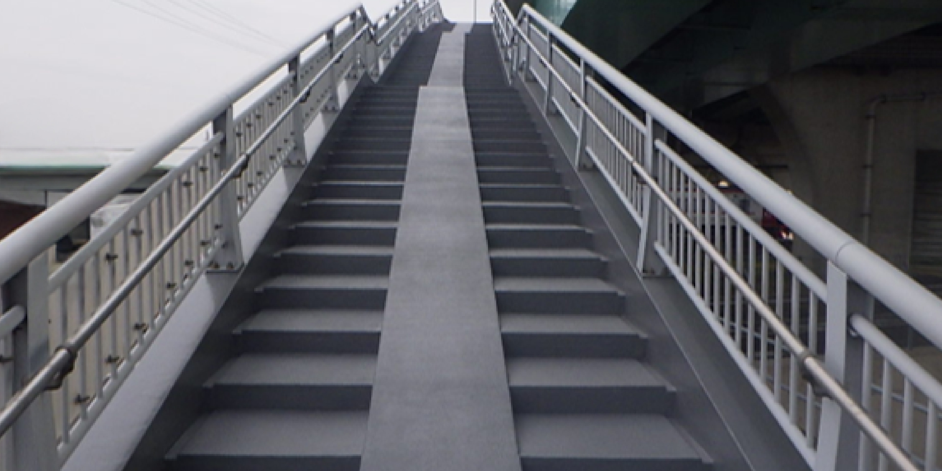 無軌道自走式ゴンドラが走行する部位やヘリポート、競技場スタンド等、大きな荷重や摩擦力がかかる重歩行以上の耐久性が要求される箇所には、エクスパンドと併用して「EXハードコート」を用いた防滑仕上げをご用意しています。