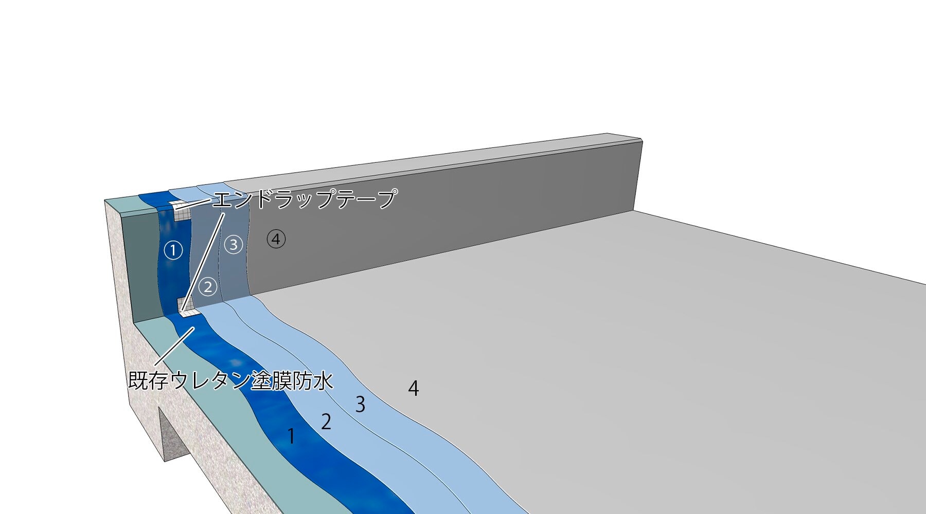 - 防水層を長持ちさせるために保護塗料を7年程度で再塗布することをおすすめします(OTコートシリコーン、速硬化OTコートシリコーン、OTコートシリコーンクール、OTコートフッ素、OTコートフッ素クールは10年間塗り替え不要)。
