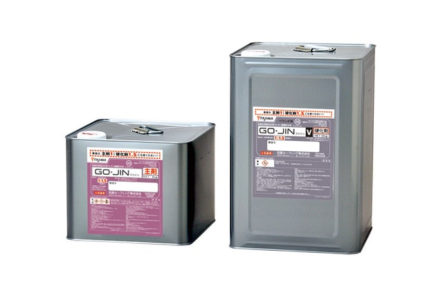 • 気象条件によりウレタン防水材を減粘させる場合は、必ず専用減粘材の「アジャストE」をご使用ください(5%以下)。一般の溶剤(トルエン・キシレン)は使用しないでください。硬化促進剤は専用の「GO-JIN用硬化促進剤」を使用してください。詳しくは、カタログをご覧ください。