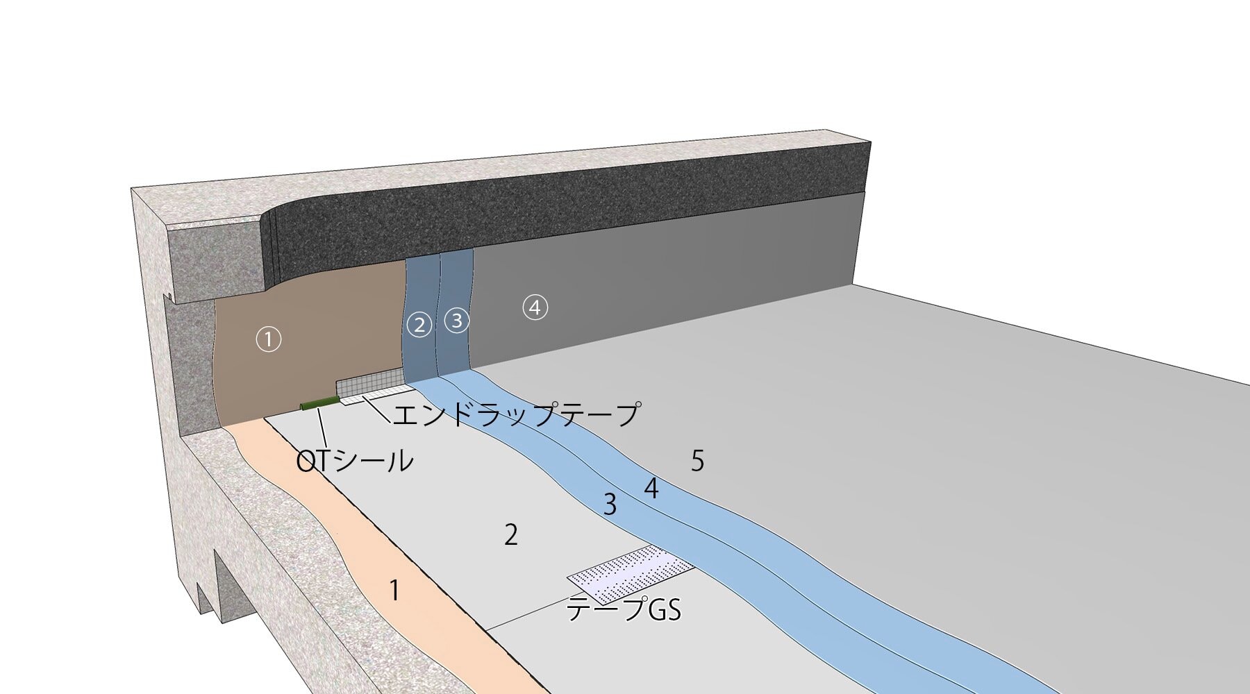 • 立上り部工程1の後、入隅部、出隅部にはエンドラップテープを施工します。