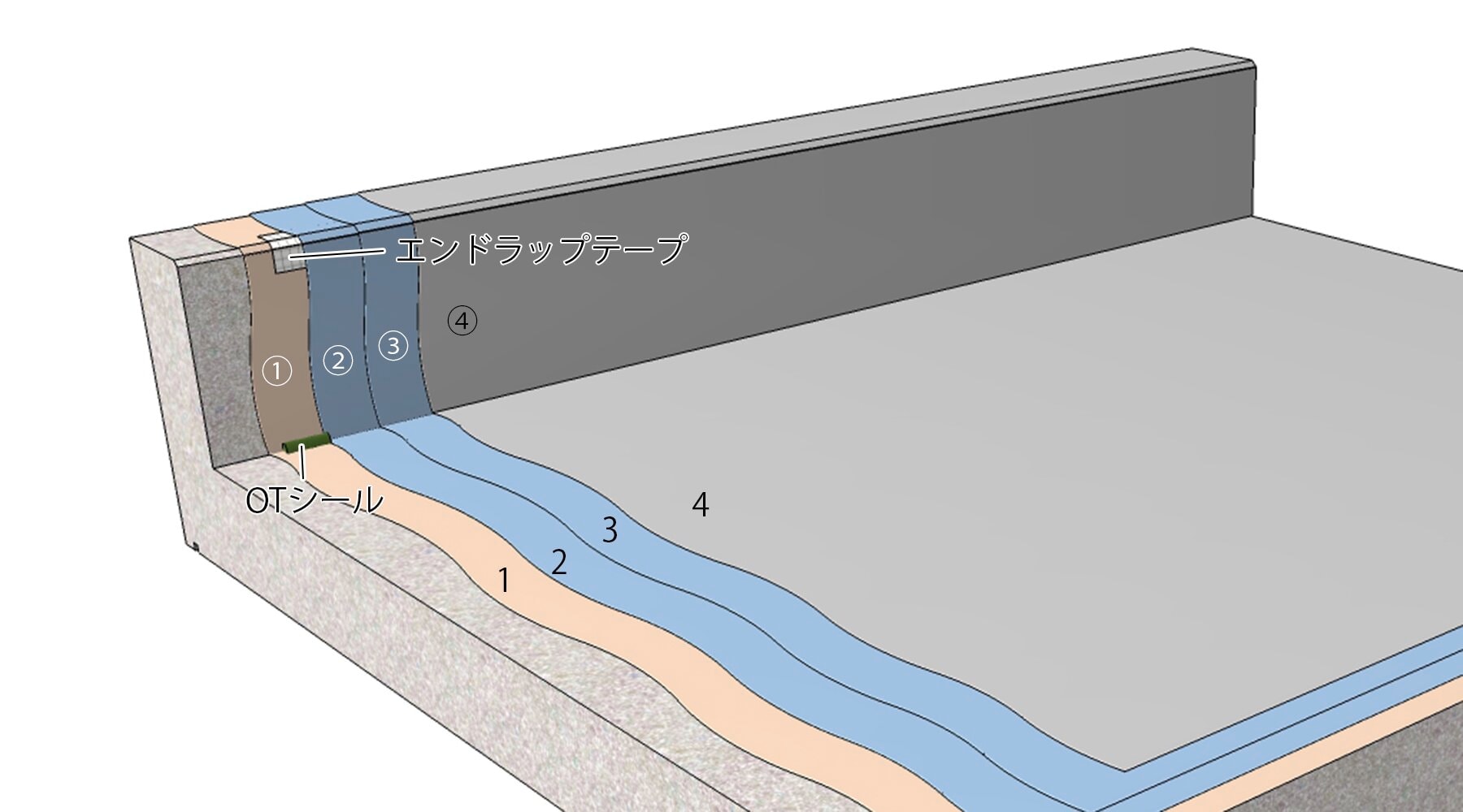 - 防水層を長持ちさせるために保護塗料を7年程度で再塗布することをおすすめします(OTコートシリコーン、速硬化OTコートシリコーン、OTコートシリコーンクール、OTコートフッ素、OTコートフッ素クールは10年間塗り替え不要)。