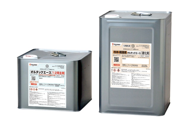 - 気象条件によりウレタン防水材を減粘させる場合は、必ず専用減粘材の「アジャストE」をご使用ください(巾木・側溝用オルタックエースは3%以下)。一般の溶剤(トルエン・キシレン)は使用しないでください。