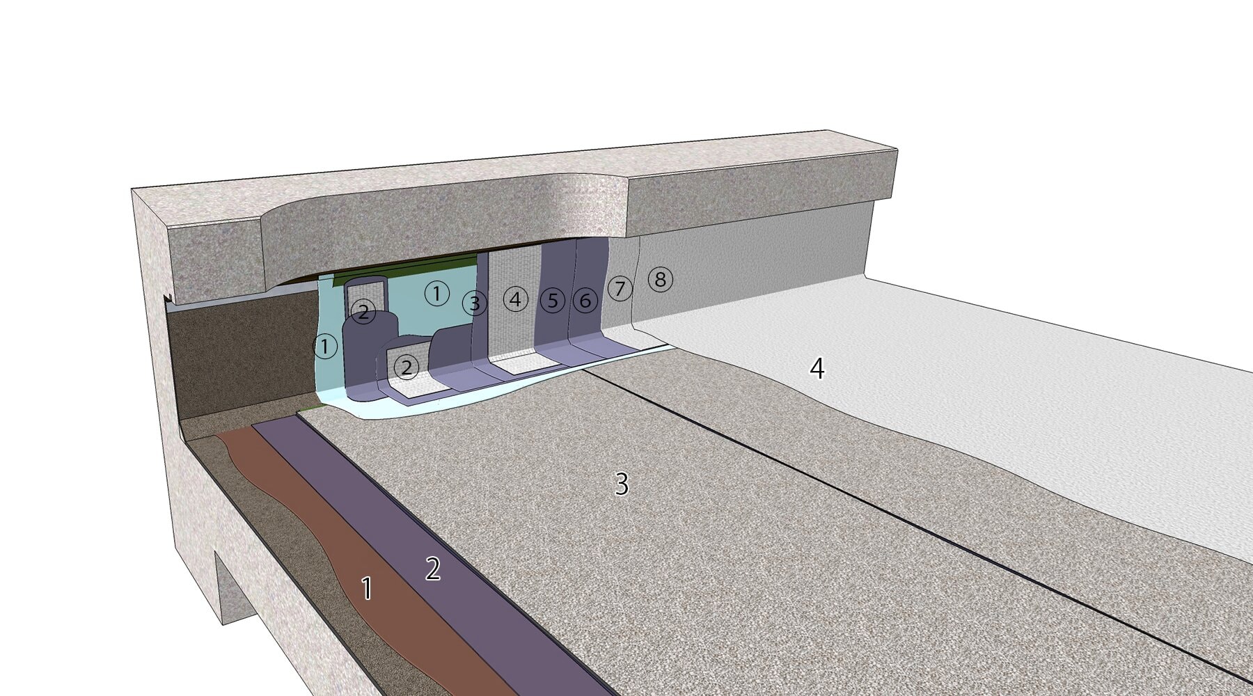 - 側溝やドレン廻りなど雨水が滞留する部位にアクアベースを使用する場合は、立上り部工程6と7の間に、アクアプライマー(0.1kg/㎡)を塗布してください。