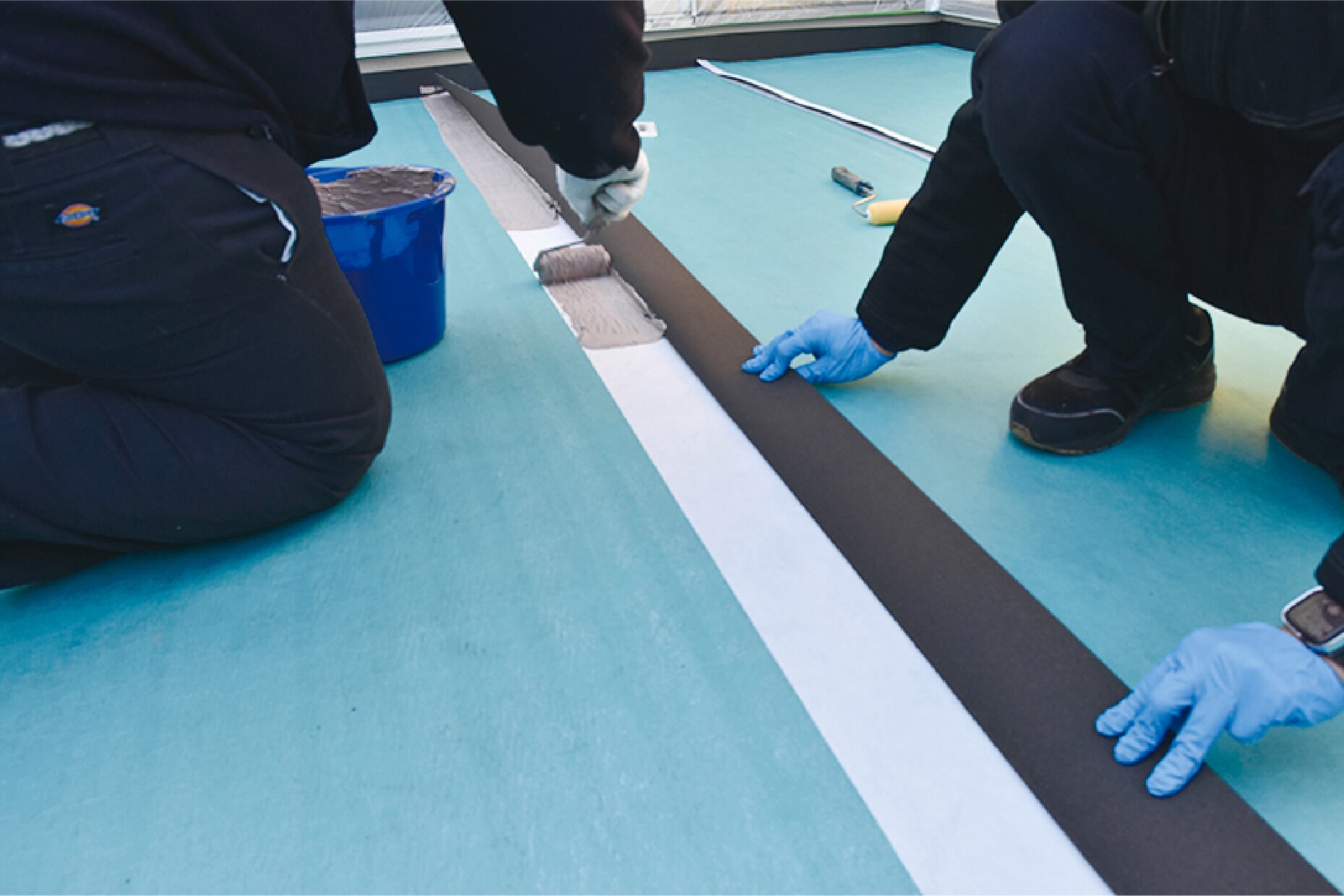 弱点になりがちなシートの継ぎ目や、架台、配管廻りなどの複雑部位に液体状の塗膜材を使用することで、精度の高い施工が可能です。