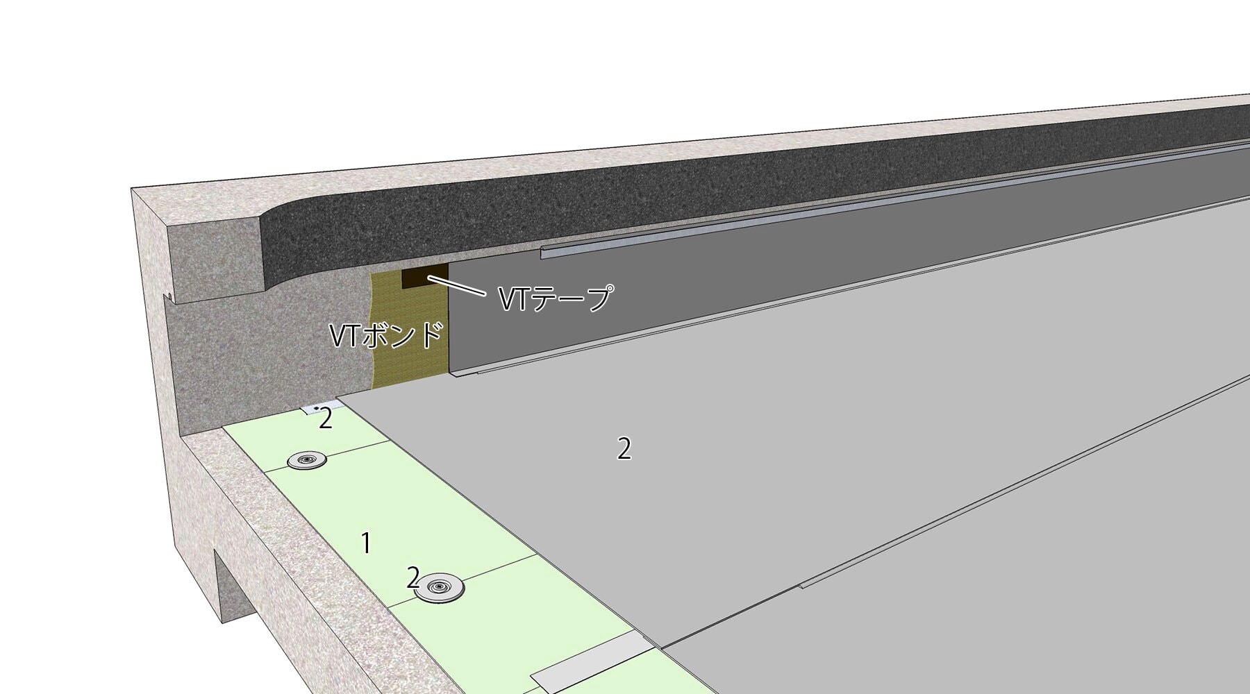 - S-F1で粘着層付または接着剤付加硫ゴム系ルーフィングシートを使用する場合は、工程2の接着剤の使用量は製造所の仕様による。