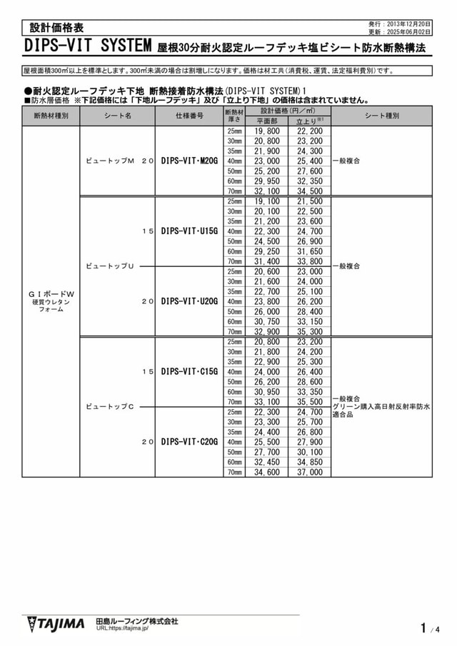 - 防火認定が必要な場合で、GIボードWの厚さが50mmを超える場合はシートは2.0mm厚とし、保護塗料(VTコート、VTコートC)が必要となります。