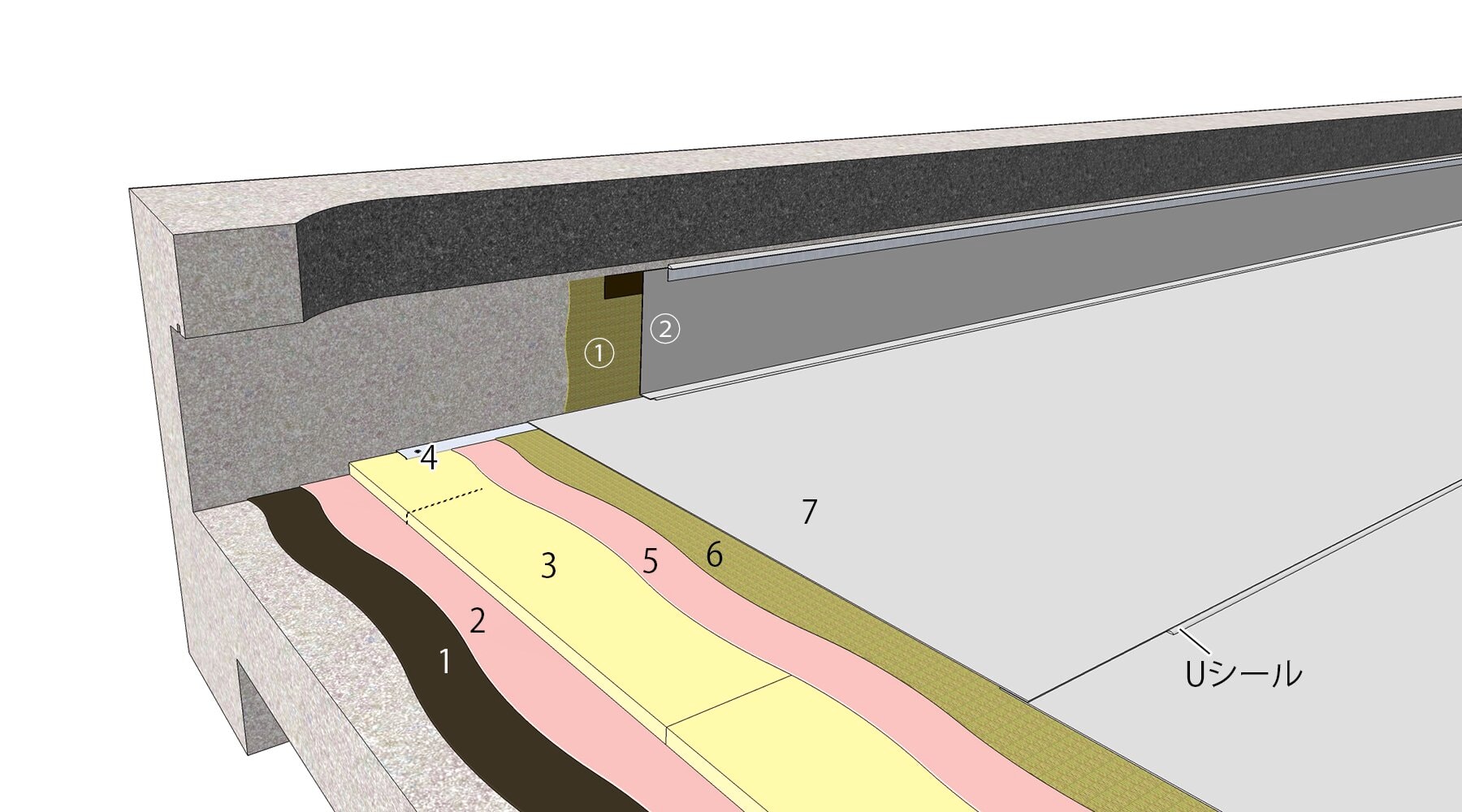 - フォームエースの厚みは、60mmを上限とします。またフォームエースは、立上りから300mm以内の箇所で、切り込みを入れます(図の破線部分)。