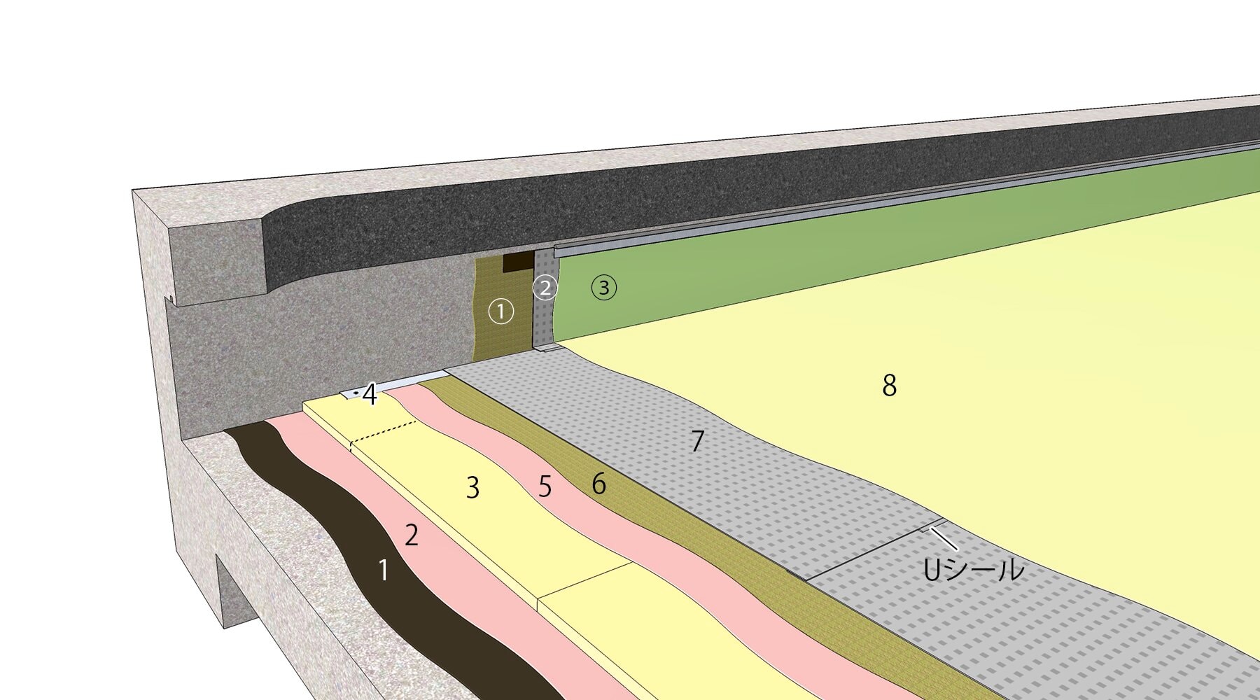 • フォームエースの厚みは、60mmを上限とします。またフォームエースは、立上りから300mm以内の箇所で、切り込みを入れます(図の破線部分)。