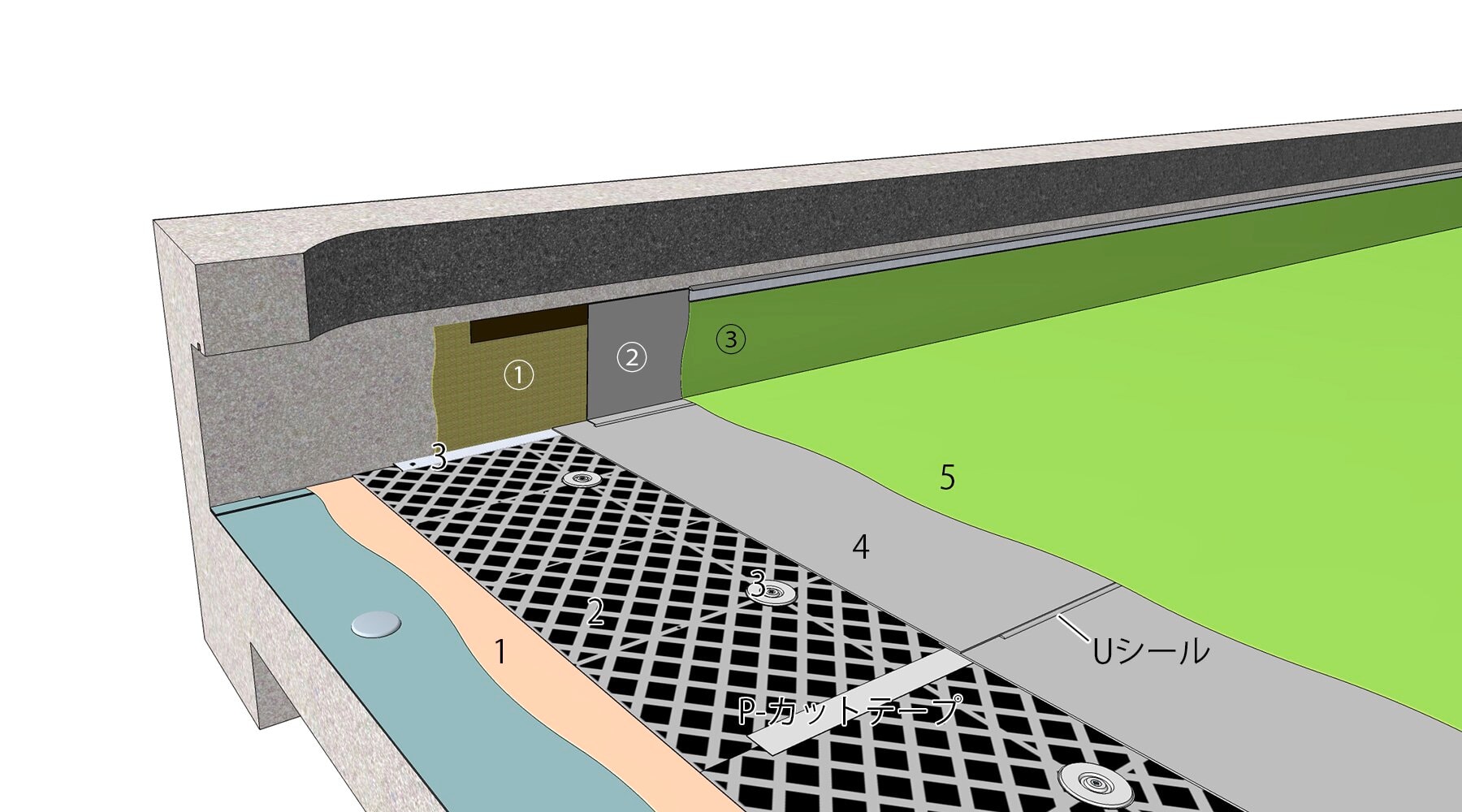 - シールドマット200のジョイント部にはP-カットテープを貼り付けます。