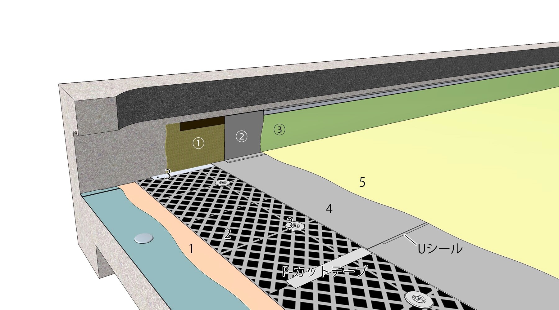 - シールドマット200のジョイント部にはP-カットテープを貼り付けます。