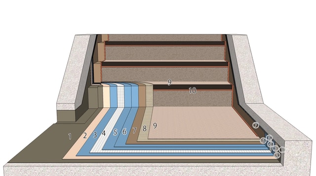 - ウレタン塗膜防水工法(防滑性ビニル床シート仕上げ)
