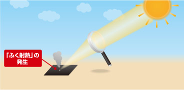 太陽光が物に当たると、熱エネルギーに変換されます。これを『ふく射熱』と呼びます。